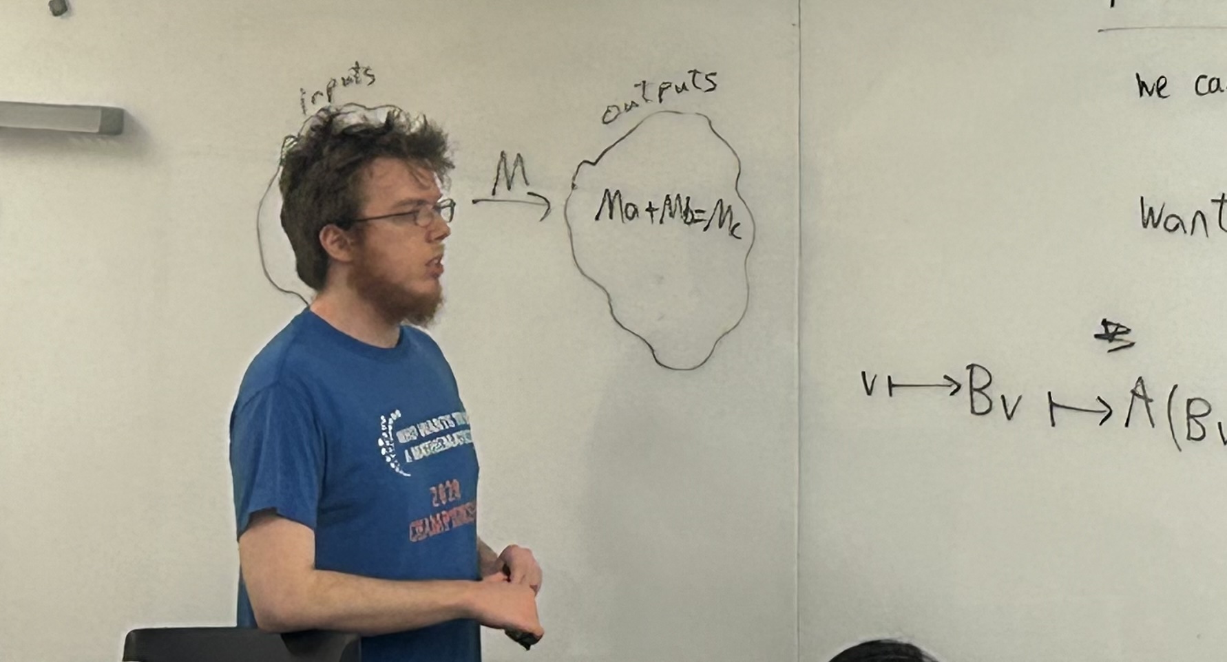 Below is a picture of Luke Robitaille during his inspiring lecture in March 2025 on Linear Algebra and Combinatorics.